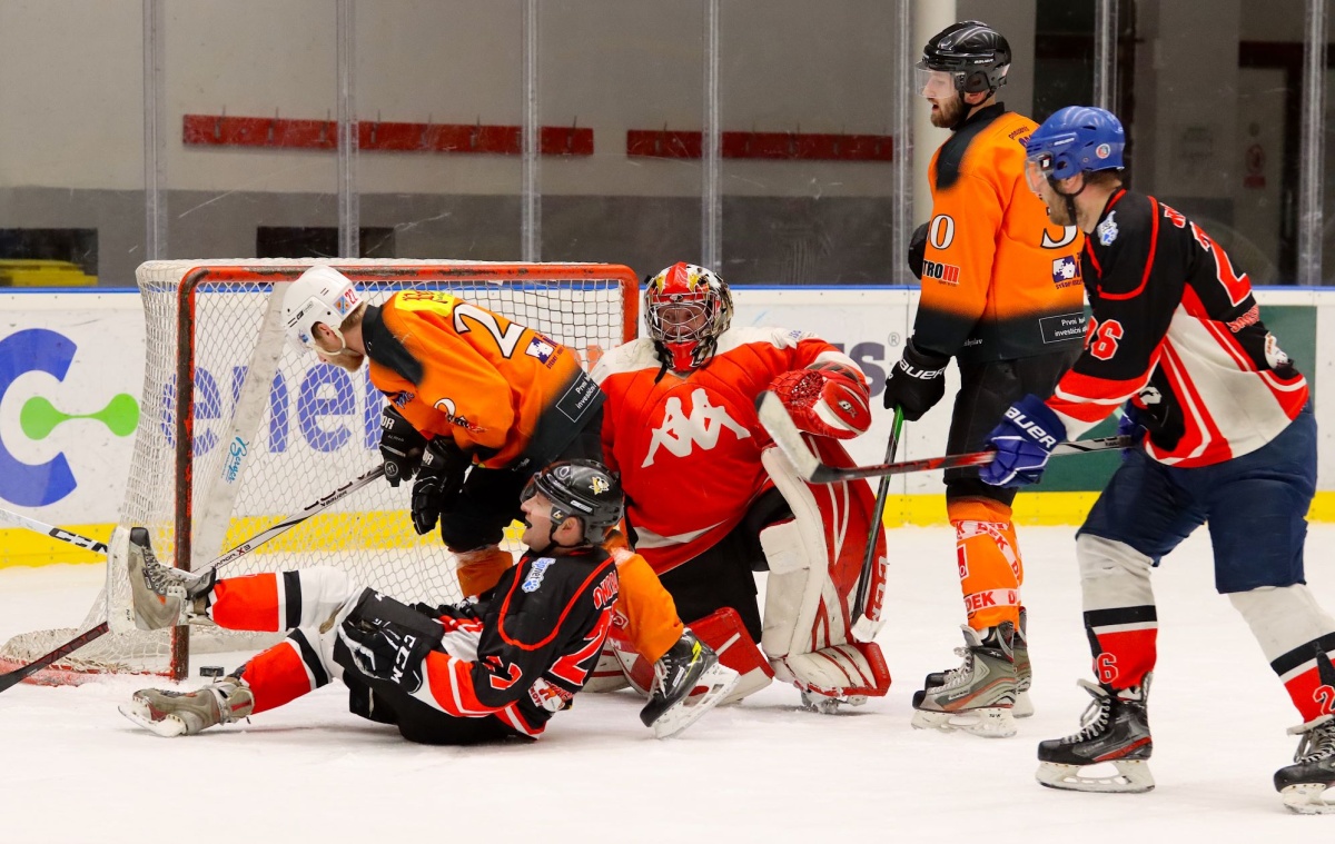 Takže na kluzišti se v každém mužstvu střídalo pouze devět borců.Fyzická i psychická zátěž je proto vysoká, vždyť běžně týmy mívají dvojnásobek hráčů.